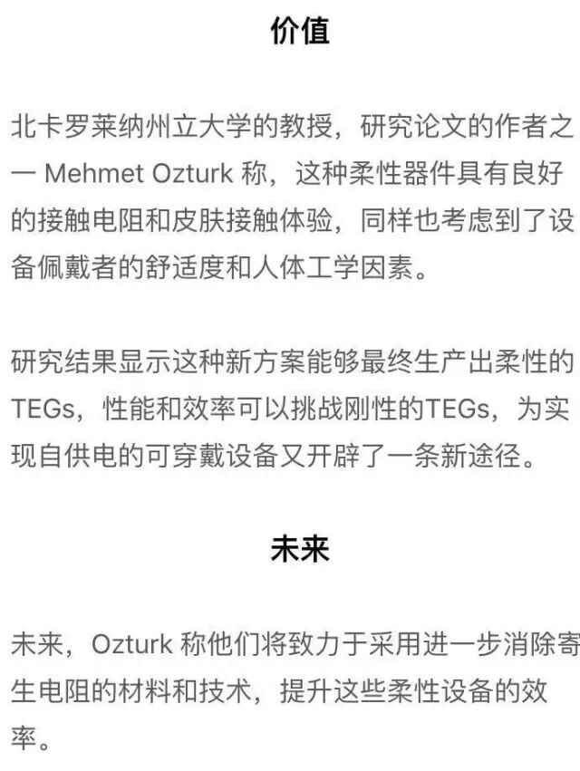 新型柔性可穿戴热电发电机:效率更高、性能更好!