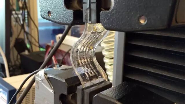 EGaIn 液态金属互连线 是这项创新的关键促成因素。它不仅具有极低的电阻,而且具有拉伸性和自修复性,这些对于柔性温差电材料都是必需的。液态金属也具有自修复性,即使万一连接线断开,液态金属将使其重新连接,让设备重新高效工作,这点让刚性设备望尘莫及。