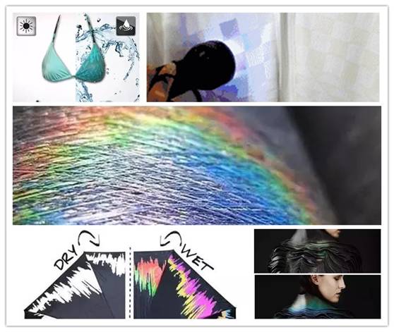 变色纺织品是指随外界环境条件(如光、温度、压力等)的变化而可以显示不同色泽的纺织品。变色纺织品凭借其具有的独特性能,广泛应用于各个领域。民用可应用于制作时尚的变色服装和百变装饰织物,军事上可用于军事伪装,防伪领域可作为防伪材料,广泛应用于票据、证件和商标等。