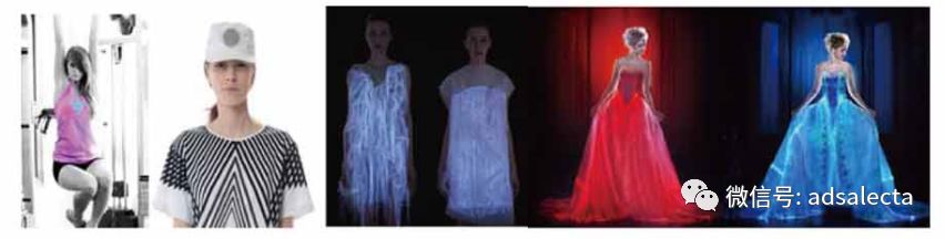 休闲娱乐类智能服装主要有热感变色、智能发光变色服饰等,主要技术体现在显示效果、控制技术和追踪技术三个方面。