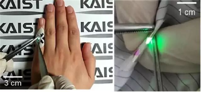 3)韩国科学技术院(KAIST)的科研团队通过将 OLED(有机发光二极管)集成到织物中,开发出了世界上最具柔性,可靠性最高的可穿戴显示器。