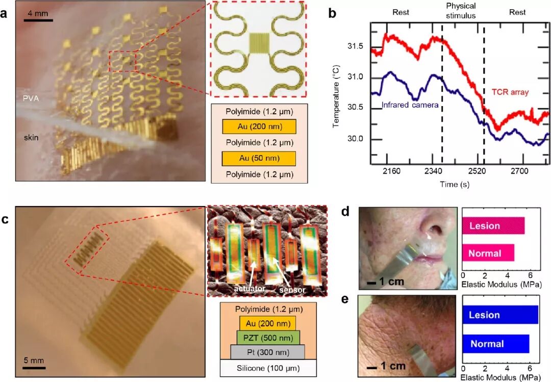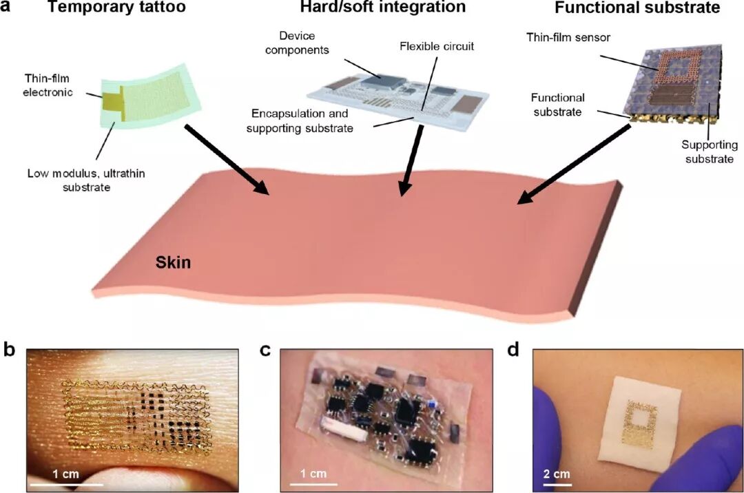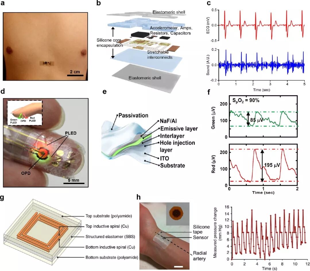 到目前为止,研究已经在设备能力、材料探索、皮肤整合技术、动力系统和机械设计方面取得了重大进展,这些技术已经产生了可伸缩和灵活的设备,能够在许多应用中提供临床相关信息,包括心脏病学,皮肤病学,电生理学和汗液诊断。