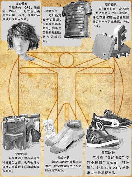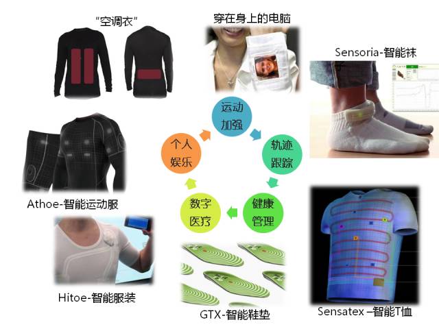 目前,全球知名服装公司、材料公司、信息业巨头、电器生产商,比如耐克、IBM、飞利浦、富士等,已经纷纷推出了概念性产品,兼具时髦的设计和超强的功能性,推出具有检测生理特征、健康管理、生活辅助、运动增强、轨迹跟踪及娱乐功能的产品,以满足未来特定人群及广大消费者的需求。