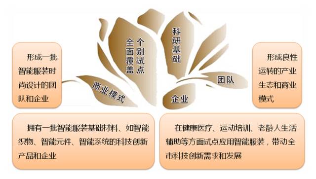 1)智能服装基础材料,如硬件、传感器、电子元件等柔性(薄膜状/纤维状)器件的开发;