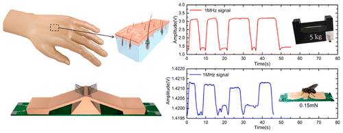 电子皮肤可非常便捷地贴合于人体皮肤表面,感知人体生理信号例如血氧浓度、血液中的酒精浓度等,以及外界环境刺激例如压力、温度等,以实现人工的触觉感知功能。如今,电子皮肤已经广泛应用于医疗、机器人、人造假肢、可穿戴技术等多个领域。